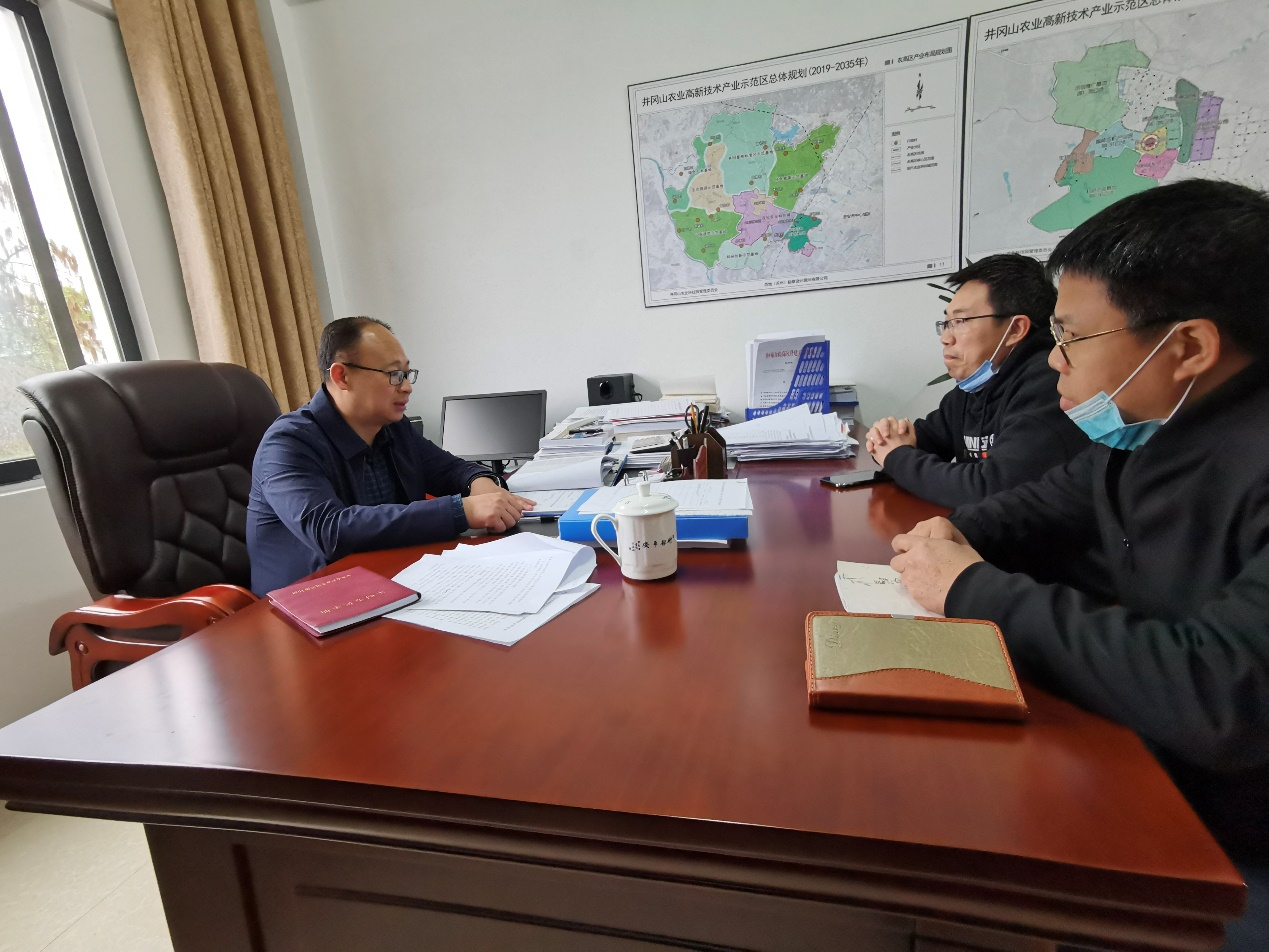 3月23日下午,重点实验室主任贺根和教授带队前往井冈山农高区对接省级专项资金建设项目,与农高区管委会主任罗于剑、项目科主任肖敏进行了会谈。罗于剑对重点实验室能主动参与省级专项资金建设项目表示感谢,他希望本地高校科研力量能更多地为农高区升建贡献力量。双方还就如何参加项目建设事项进行了深入交流。