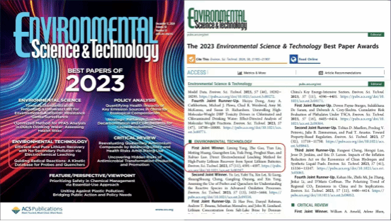 《ES&T》期刊是环境科学与技术领域内历史悠久且声誉卓著的顶尖期刊,中国科学院一区TOP期刊(IF=10.8),也是自然指数(Nature Index)收录的重要期刊之一,在全球具有广泛的影响力,其年度优秀论文须在相关研究领域产生重大和深远影响。《ES&T》期刊每年都会根据论文工作的质量和新颖性以及对推动环境科学和工程进展的影响等标准评选年度最佳论文。2023年度,该期刊从发表的1600篇论文中选取30篇论文评选为“最佳论文”。其中,环境科学、环境技术、环境政策、专题评论和前瞻观点等五类分别选出6篇最佳论文。